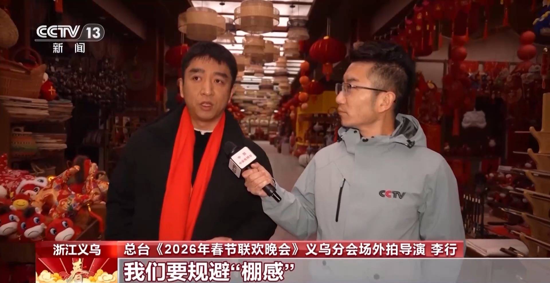 总台《2026年春节联欢晚会》义乌分会场外拍导演 李行:在这条街区创作有一个巨大的挑战,就是我们要规避“棚感”。我们想让观众看到这是一个真实的街区,而不是临时搭了一个景,所以这里就填充了很多关键的物品、商品,以及关键的人。